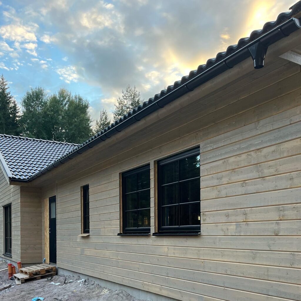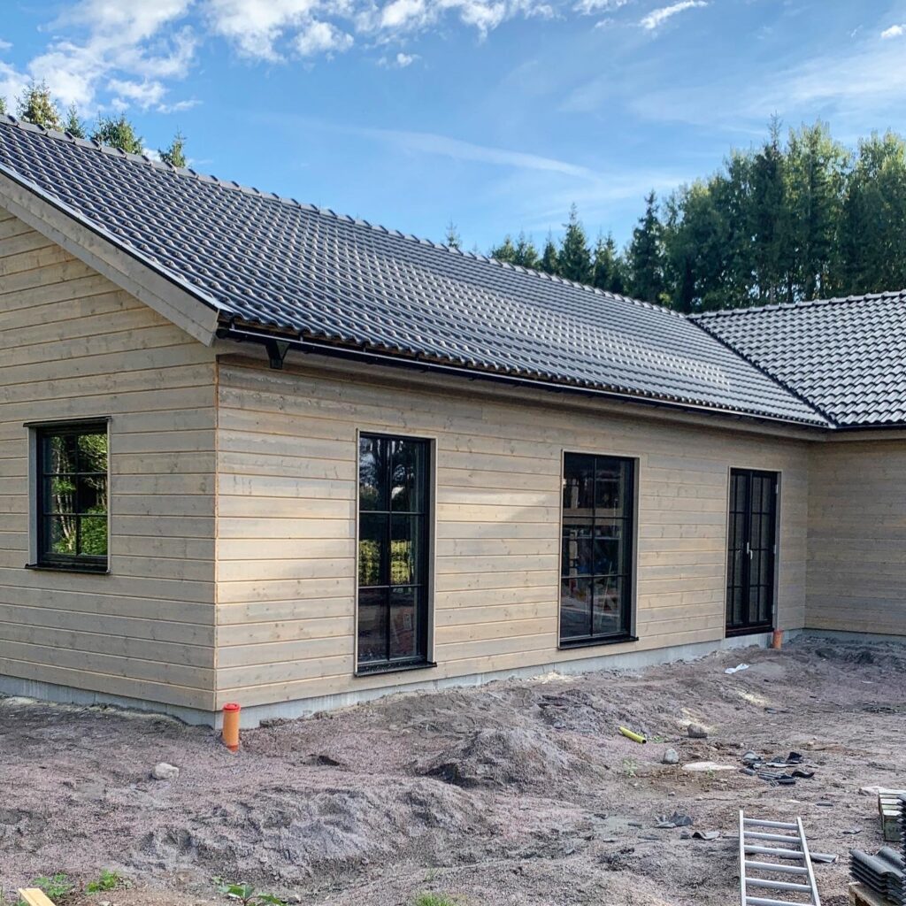 När du föreställer dig ett hus, vilket hus som helst, sätter du med ens en kulör på det. Eller hur? Och för många är det självklart vilken kulör ens hus ska ha. Jag föreställde mig att vårt hus skulle vara brunt, men det kom inte att bli brunt vilket jag mycket väl visste. Vi resonerade så att huset skulle smälta in i sin omgivning och vara en del av naturen och istället för målarfärg valde vi då en lasyr för att behålla träets karaktär.